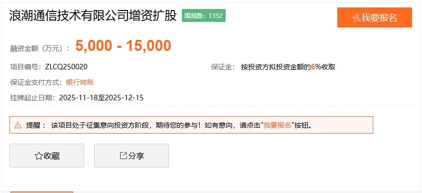 其中,浪潮通信技术有限公司拟进行B轮融资,征集投资方1~6个,拟融资金额0.5~1.5亿元,用于新产品研发及现有产品迭代、完善销售体系、补充公司流动资金。
